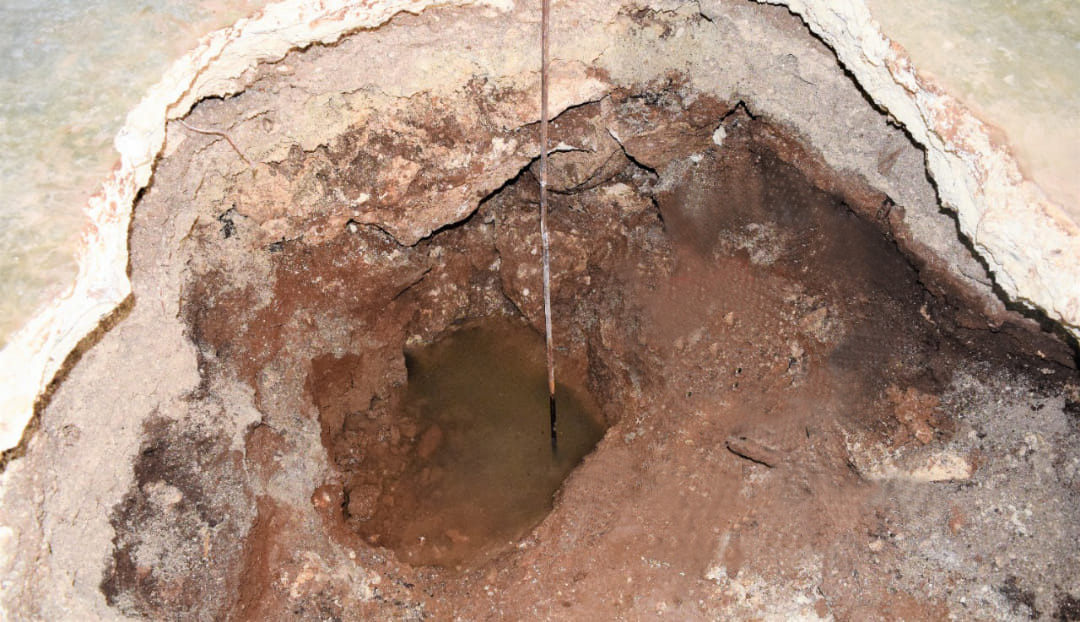 Movida por la curiosidad, con ayuda de familiares empezó a levantar el piso y vio que el suelo se encontraba reblandecido y lodoso, por lo cual lo removieron «cuando llegamos al fondo sentimos como laja, pero era una piedra como sascab, al levantarla brotó el agua».