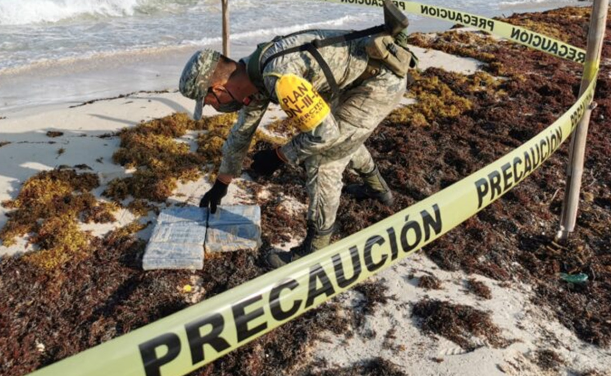 Estos estupefacientes fueron descubiertos por el personal militar en uno de sus recorridos por la zona de playas, como parte del operativo permanente de seguridad y vigilancia que los elementos del Ejército Mexicano realizan a diario en las playas de Cozumel.