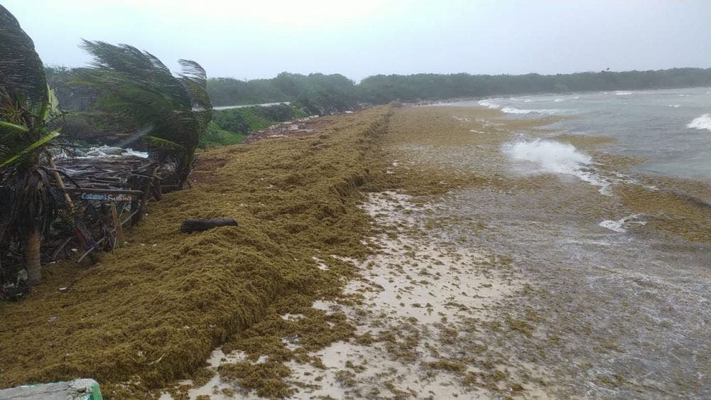 Playas de la isla de Cozumel nuevamente tiene la presencia de sargazo después del paso de la tormenta tropical “Cristóbal”.