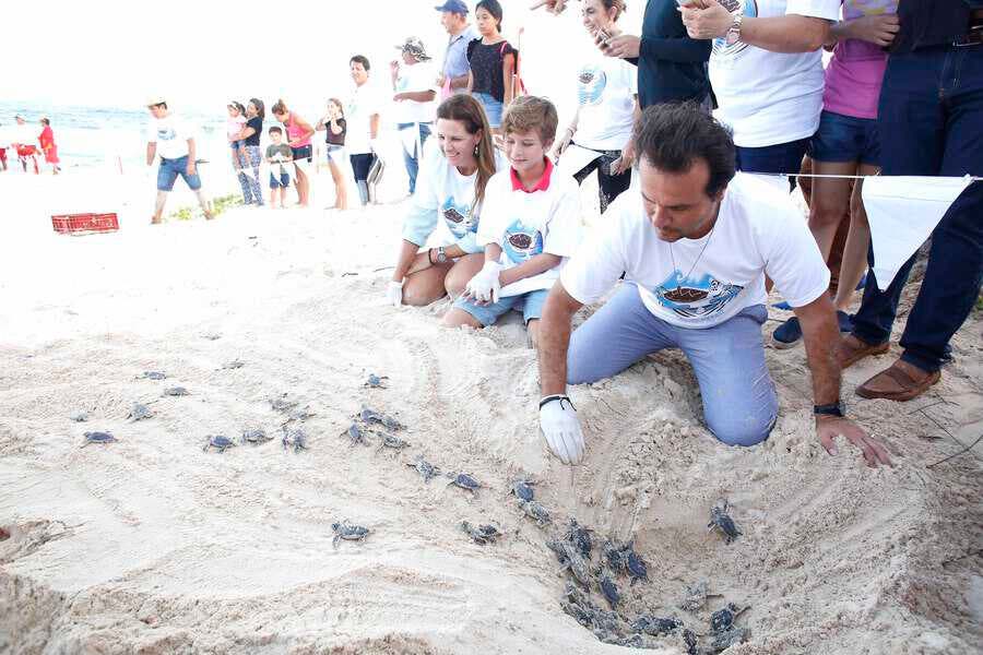 Participan Pedro Joaquín y su familia en la Primera Liberación de Crías de Tortuga