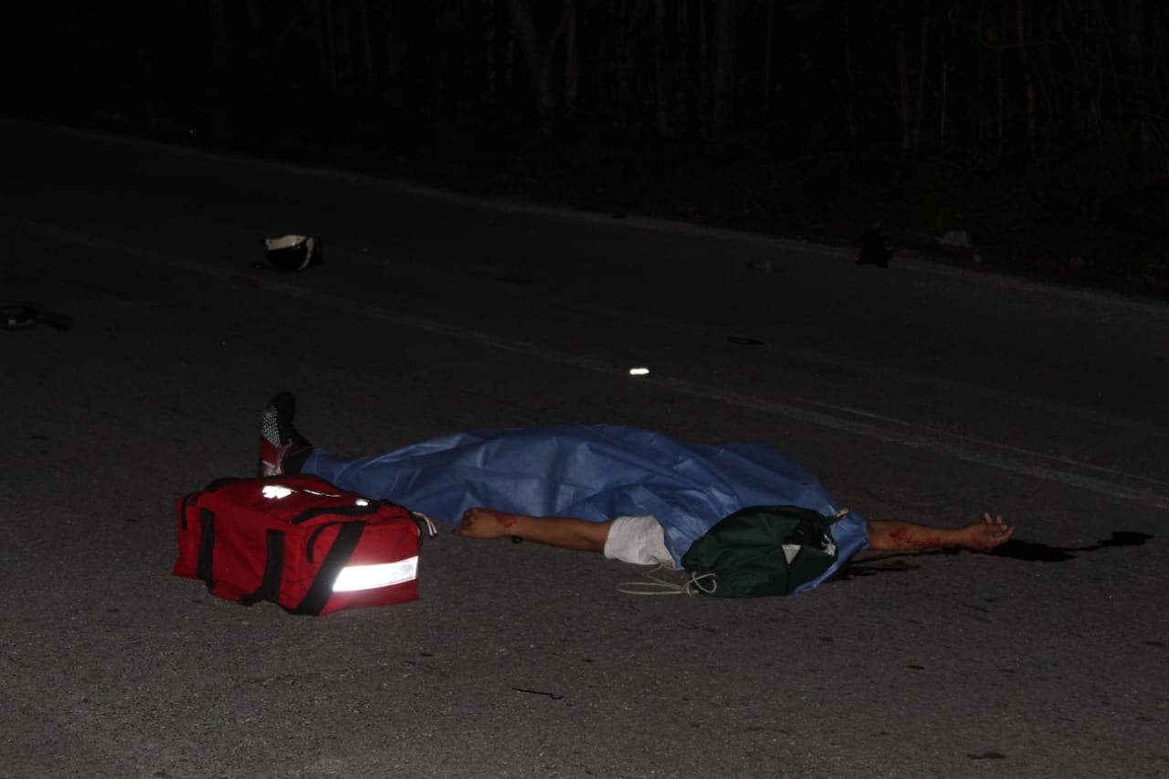 Un Joven fallece al estrellarse contra un vehículo estacionado, cuando se transportaba en su motocicleta sobre la carretera transversal de Cozumel.