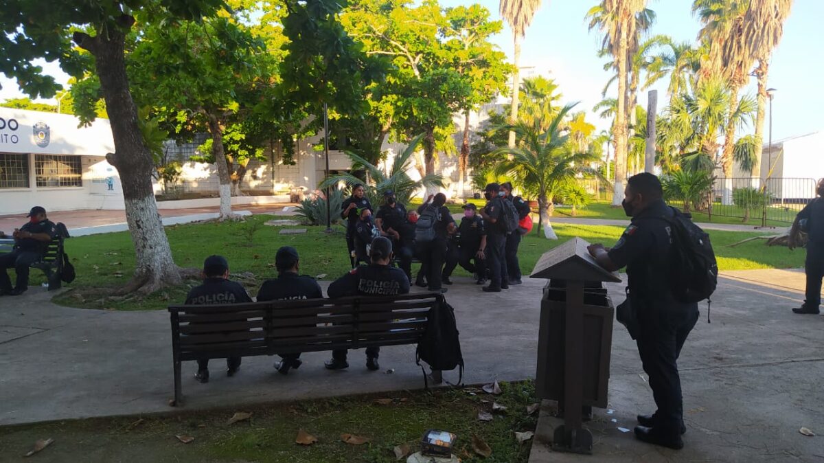Cozumel.- Policías municipales se manifiestan contra la humillación recibida por la administración de Pedro Joaquín por la entrega de un bono de 500 pesos que recibieron por el fin de la administración.