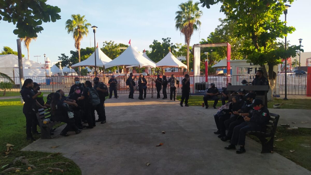 Desde las 5 de la mañana se inició esta manifestación en donde dejaron de dar el servicio de seguridad al evento deportivo Ironman 70.3, sin dejar de dar seguridad a la ciudadanía.