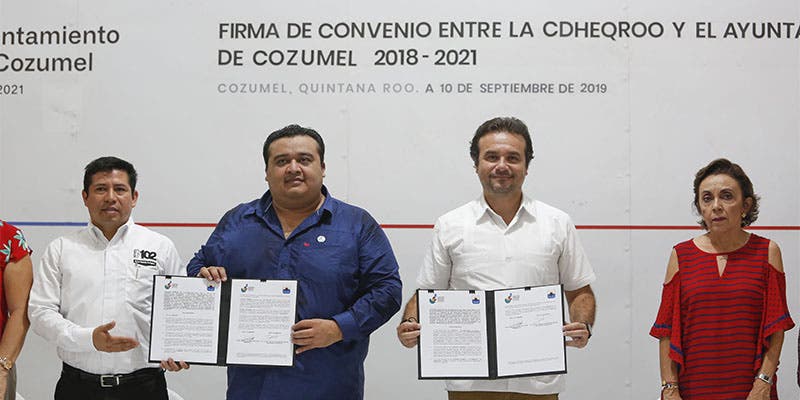 A fin de coadyuvar con la promoción, difusión y protección de los derechos humanos de los cozumeleños, el Presidente Municipal, Pedro Joaquín Delbouis, firmó un convenio de colaboración con la Comisión de Derechos Humanos de Quintana Roo (CDHEQROO).