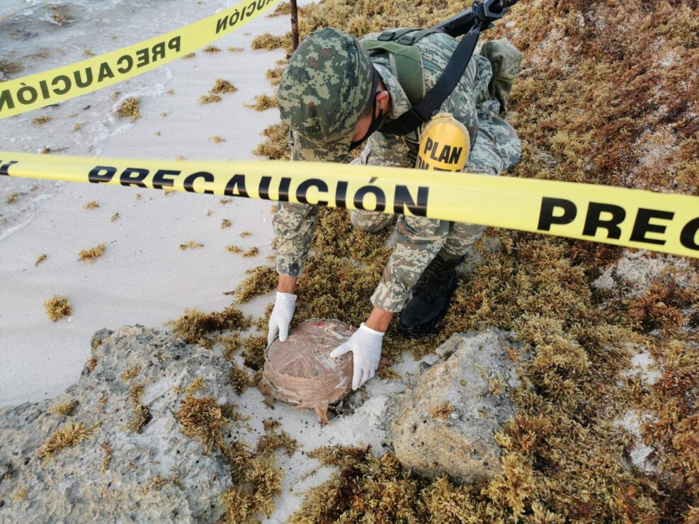 Recala «surtido» de drogas en playas de Cozumel, a través de sus recorridos que realizan por la zona costera oriente, en busca de recales de droga, elementos de la Secretaría de la Defensa Nacional (Sedena) localizaron una carga de alcaloides.