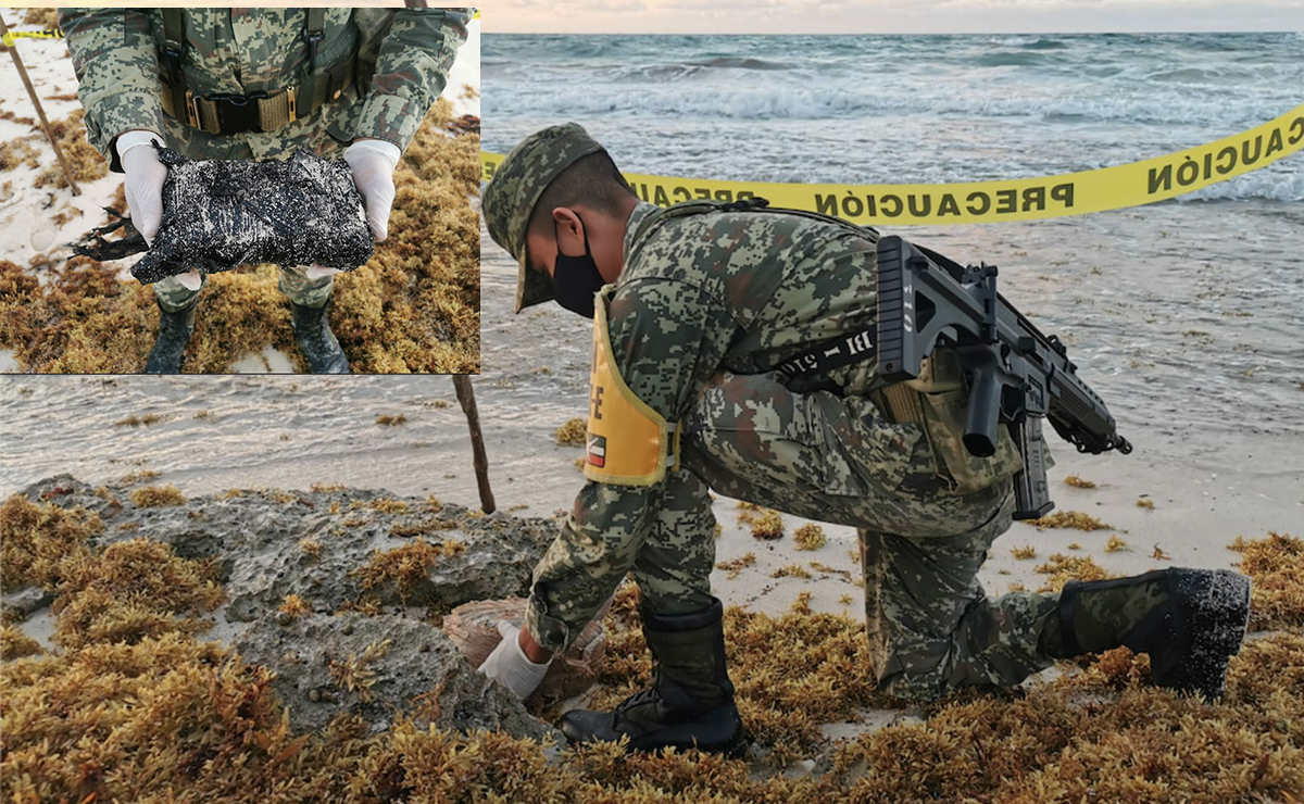 Recala «surtido» de drogas en playas de Cozumel, a través de sus recorridos que realizan por la zona costera oriente, en busca de recales de droga, elementos de la Secretaría de la Defensa Nacional (Sedena) localizaron una carga de alcaloides.