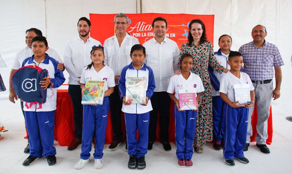 En este primer convenio suscrito por la “Fundación Lazos” en Cozumel se hizo la entrega simbólica de paquetes escolares y libros de valores a cinco niños de diferentes grados escolares.