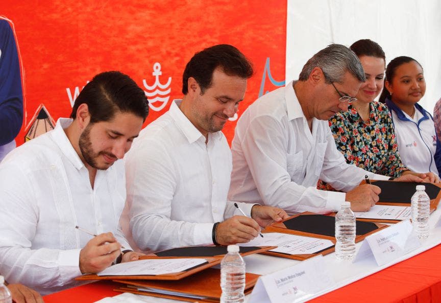 El Presidente Municipal, Pedro Joaquín Delbouis, firmó esta mañana como testigo de honor el convenio de colaboración suscrito por la empresa Winjet Fast Ferry y la Fundación Lazos, denominado «Alianza por la Educación de Cozumel”, que beneficiará a 190 alumnos apadrinados de la Primaria «Elio Carmichael», con el objetivo de formar estudiantes cozumeleños con un nivel académico competitivo y de excelencia.
