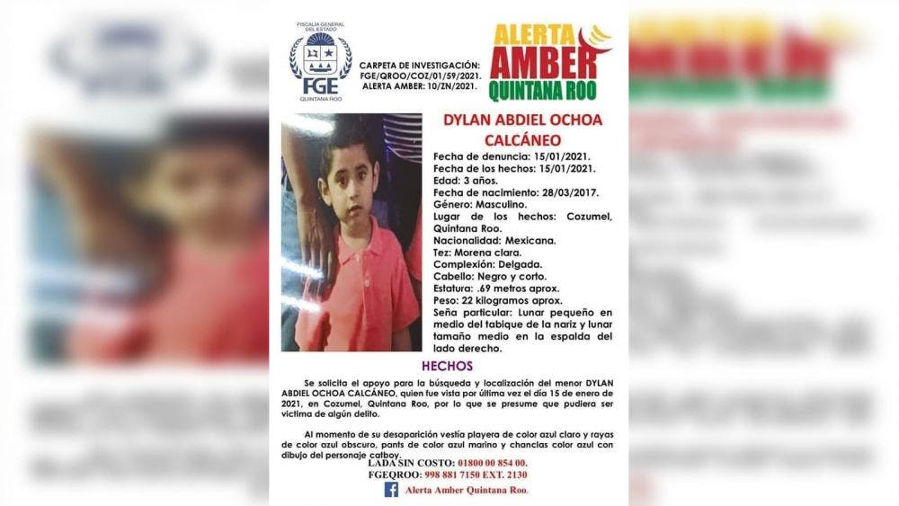 Una desaparición mas se suma a la lista de personas de cuyo paradero no se sabe nada, esta ves es en Cozumel y se trata del niño Abdiel Ochoa Calcáneo, de apenas tres años de edad.