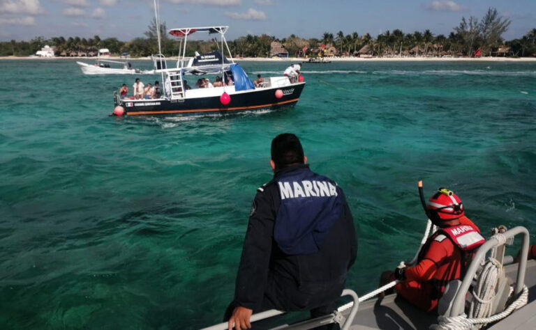 La Secretaría de Marina–Armada de México (SEMAR) rescata a 14 personas que se encontraban a la deriva en una embarcación a nueve millas náuticas (16.68 kilómetros), aproximadamente al sur de Cozumel.