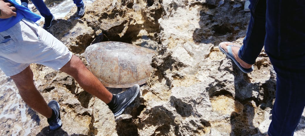 Griffins Wagoner, quien estaba de visita junto con su familia en el parque ecoturístico Punta Sur, se percató de que una tortuga marina se había quedado atrapada entre las piedras y dio aviso al guía que los acompañaba, Carlos Angulo, quien de inmediato notificó al personal para tomar las medidas pertinentes.