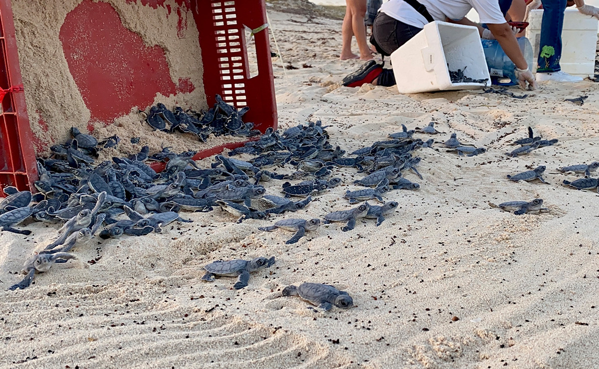 Rescatan 120 nidos de tortugas y liberan más de 7,500 en Cozumel