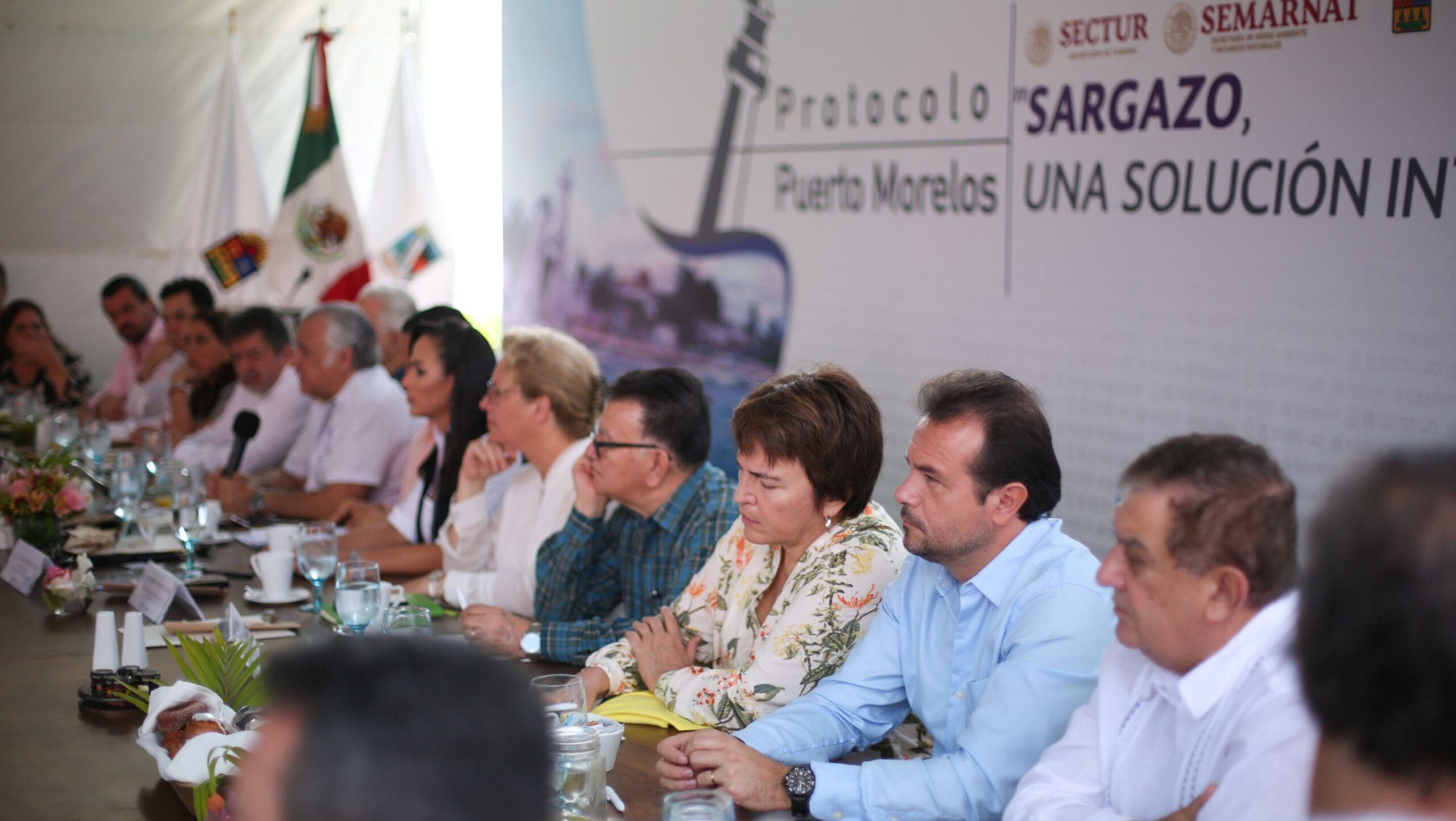 En la reunión “Protocolo Puerto Morelos: Sargazo, una solución integral’’, participaron los titulares de las Secretarías federal de Turismo (Sectur) y Medio Ambiente (Semarnat), Miguel Torruco Marqués y Josefa González Blanco Ortiz Mena, respectivamente; el Gobernador del Estado, Carlos Joaquín González; el titular del Fondo Nacional de Fomento al Turismo (Fonatur); el delegado del Gobierno Federal en Quintana Roo, Arturo Abreu Marín; hoteleros e investigadores de la Universidad Nacional Autónoma de México (UNAM).