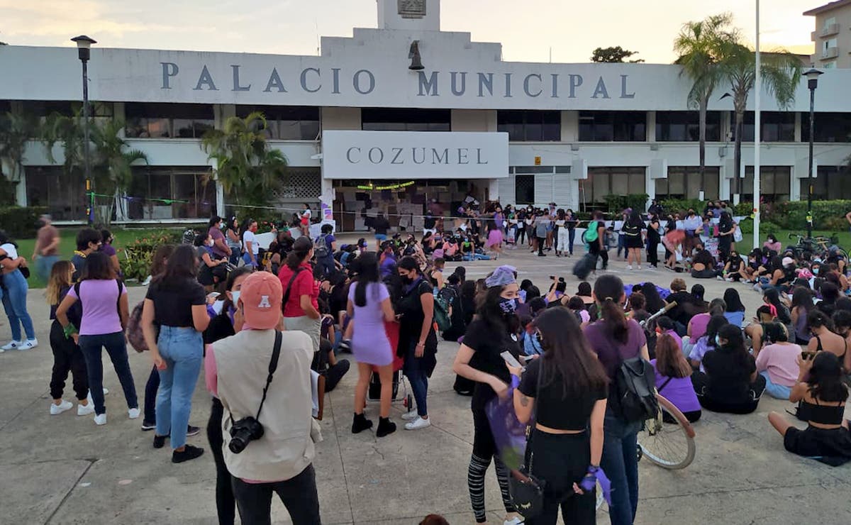 Al llegar frente al palacio municipal colocaron los diferentes carteles con los mensajes en pro de la mujer para posteriormente realizar una actividad de lectura de relatos de acoso y violencia que han sufrido diferentes mujeres de todas las edades acá en Cozumel.