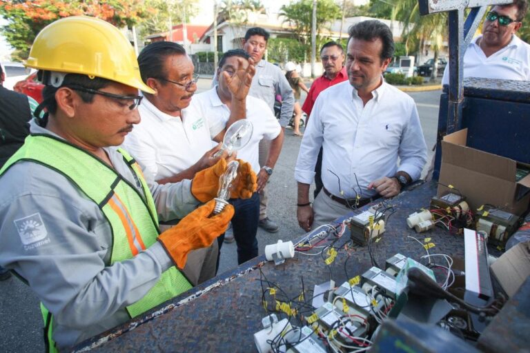 Supervisa Pedro Joaquín avances en la renovación del alumbrado público en Cozumel