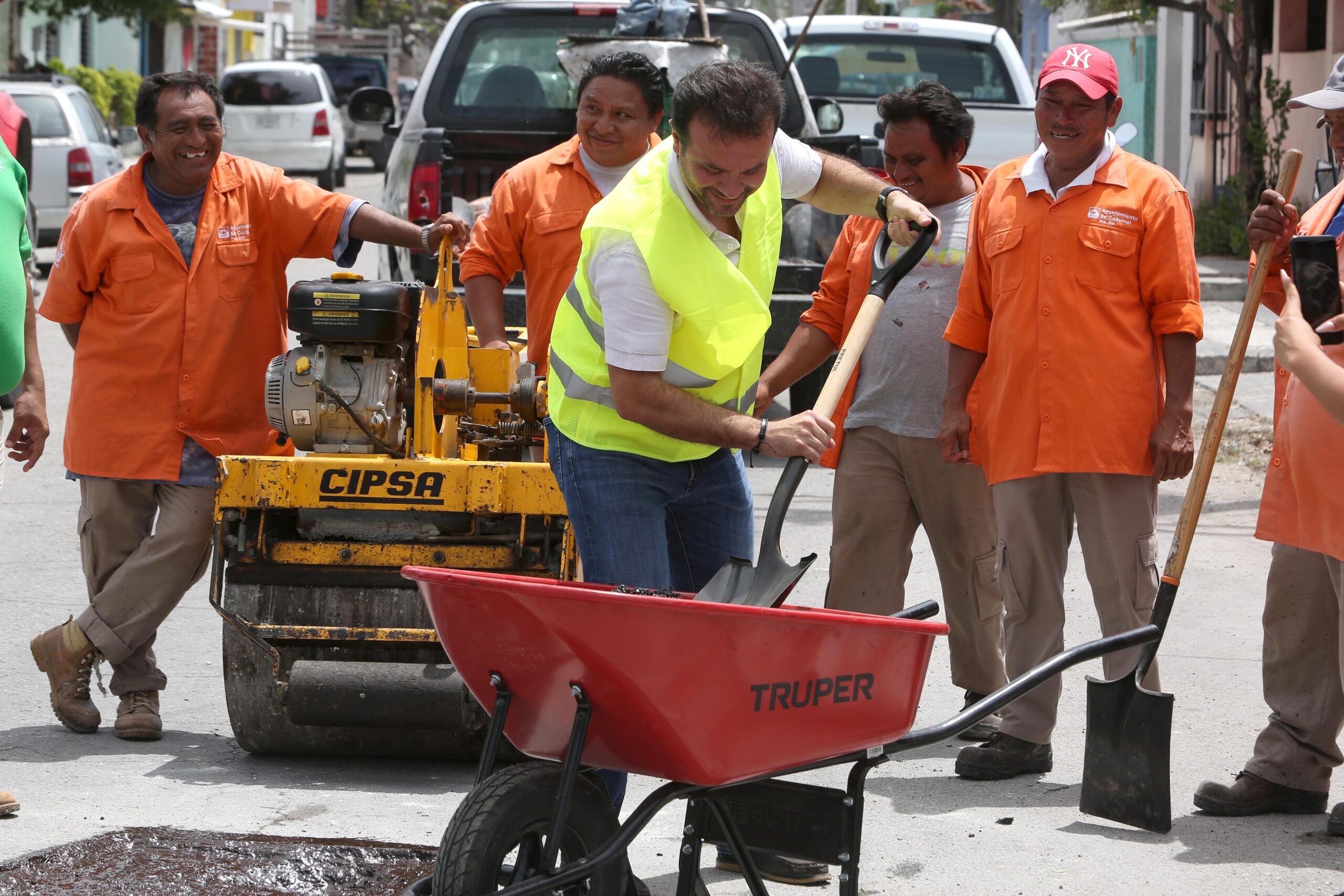 A temprana hora, el Presidente Municipal llegó a la Colonia “10 de Abril”, en la 60 Avenida entre las calles 10 y 12, donde incluso se sumó a la labor de los trabajadores de Servicios Públicos Municipales de colocación de asfalto frío, mezcla especial para la temporada de lluvias, que dará mayor calidad y duración y permitirá que las familias de Cozumel puedan transitar con más seguridad.