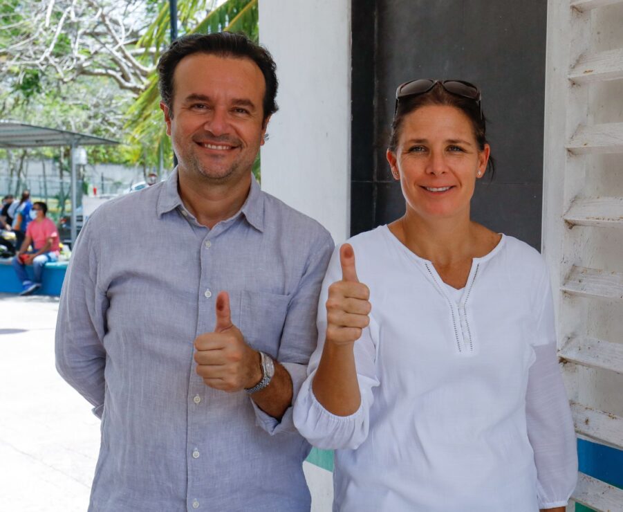 En la escuela ‘Benito Juárez’ en Cozumel realizaron su votación los candidatos Pedro Joaquín y Gabriela Ángulo de la alianza Va por México y el partido Redes Sociales Progresistas (RSP), respectivamente.