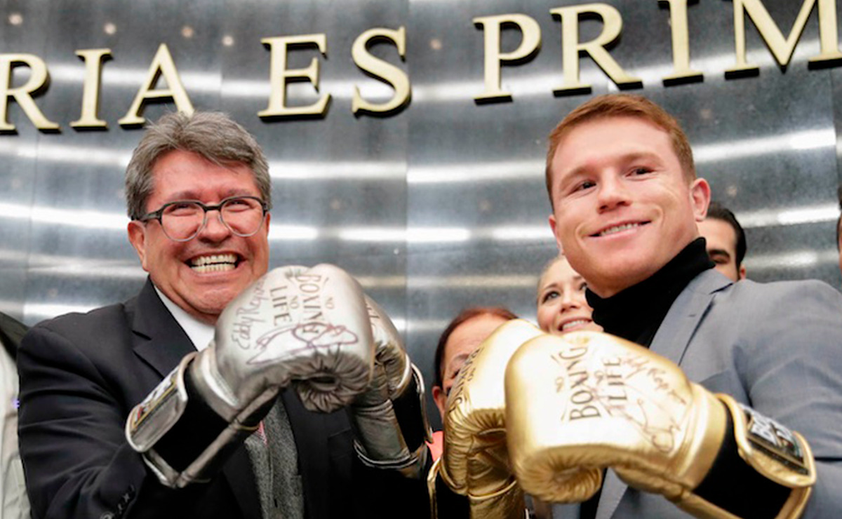 Visiblemente emocionado, Monreal se puso unos guantes color plata para la fotografía con Álvarez, con guantes dorados, en la primera aparición pública del campeón en su país, luego de haber derrotado el pasado 6 de noviembre al estadounidense Caleb Plant.