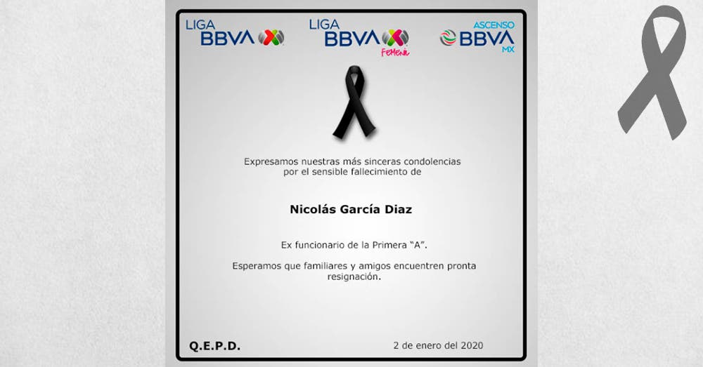 Ascenso MX: Muere ex directivo Nicolás García Díaz.- El ex directivo del equipo Correcaminos y funcionario del Ascenso MX, Nicolás García Díaz, perdió la vida el pasado 2 de enero.