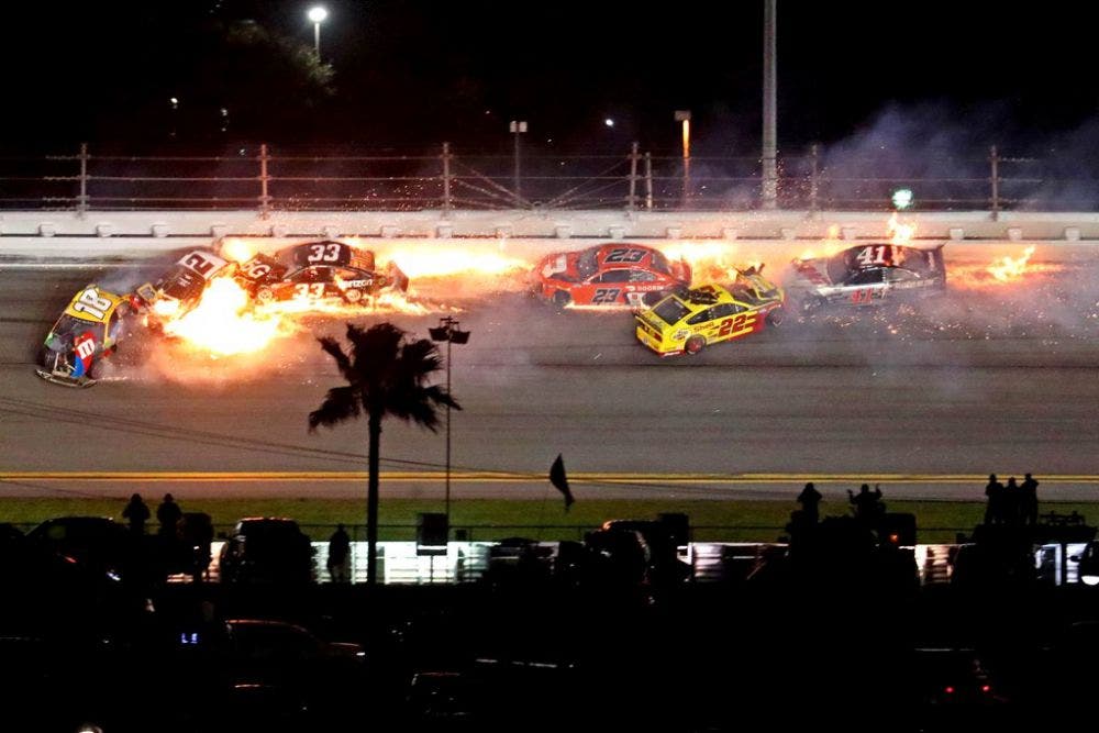Joey Logano y Brad Keselowski, quienes estaban en primero y segundo, chocaron entre ellos en el giro definitivo para iniciar una última carambola de la carrera que marcó el inicio de la temporada 2021.