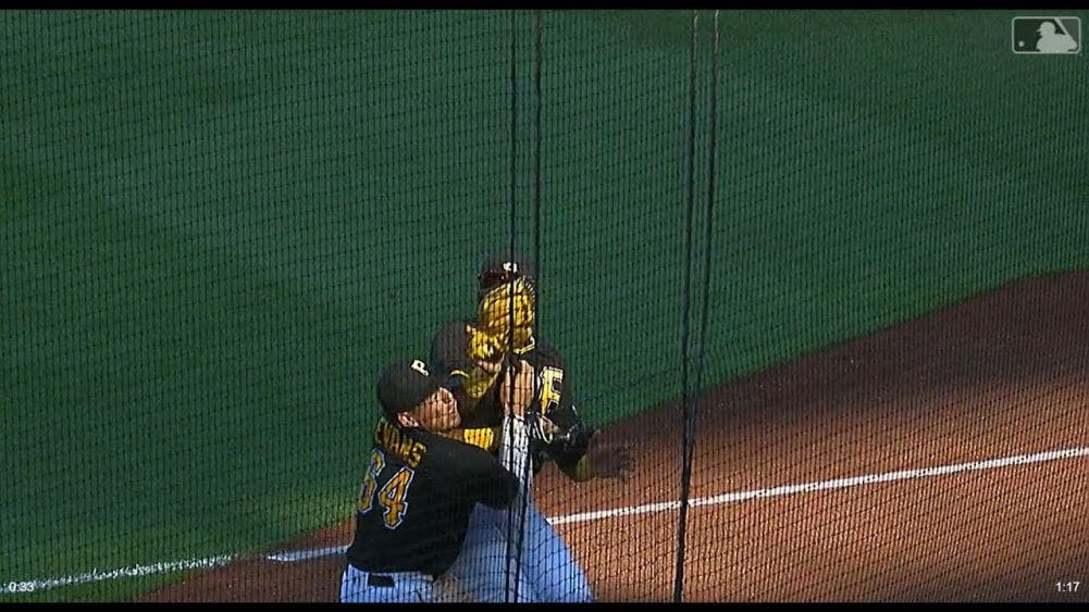 Se trata de los peloteros Philip Evans y Gregory Polanco de los Piratas, quienes no se pusieron de acuerdo y se impactaron por no perder de vista la bola, logrando que uno de ellos acabara noqueado.