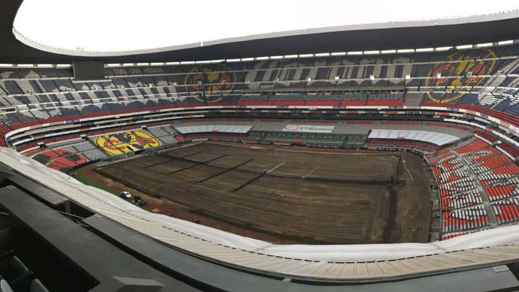 Reparan cancha del Estadio Azteca