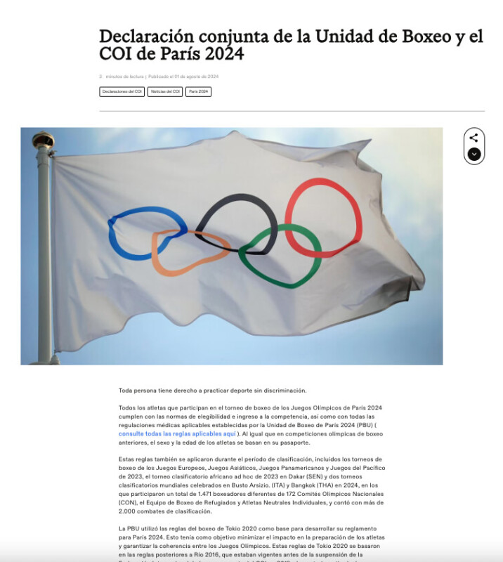 Declaración conjunta de la Unidad de Boxeo y el COI de París 2024
