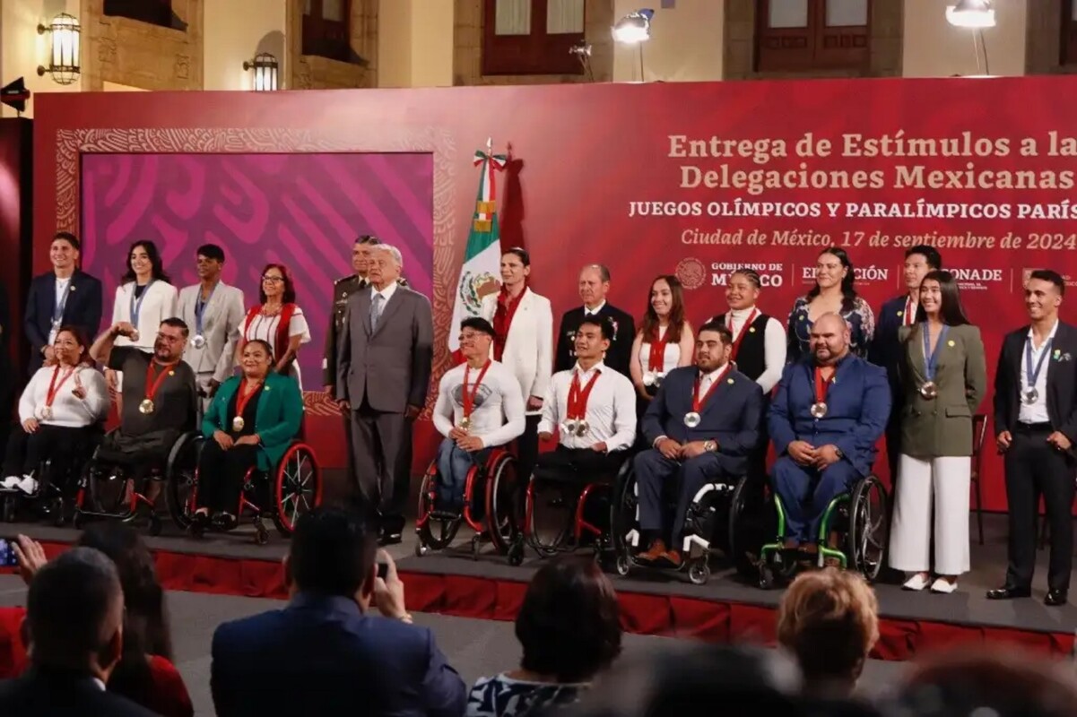 El presidente de México, Andrés Manuel López Obrador, encabezó este mediodía la entrega de estímulos económicos a quienes participaron en los Juegos Olímpicos y Paralímpicos París 2024.