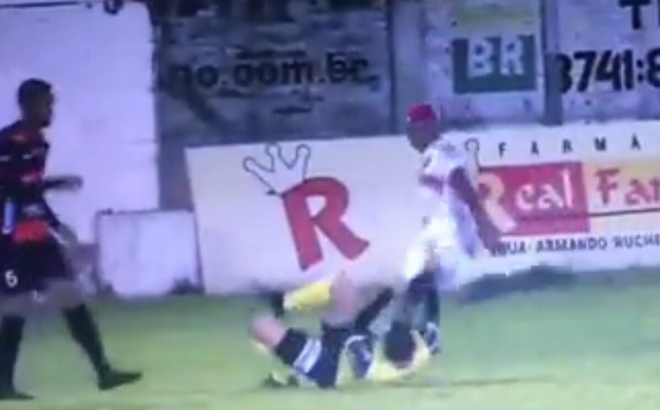 Así es, un deportista fue detenido y acusado de intento de homicidio por la violenta patada que propinó a un árbitro en la nuca, en un partido de la Segunda División del estado de Río Grande do Sul, que dejó inconsciente al colegiado.
