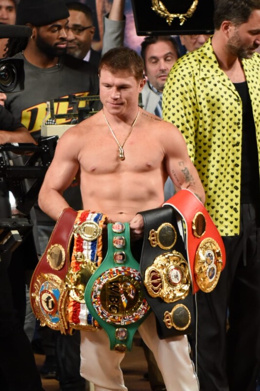Tras el pesaje, ambos pugilistas se declararon listos para el combate de este sábado. Vencieron ya a la báscula y ahora solo falta definir en el ring si Saúl será capaz de retener los cuatro títulos mundiales que expondrá en el Estadio Akron, avalados por el CMB, OMB, AMB y la FIB.