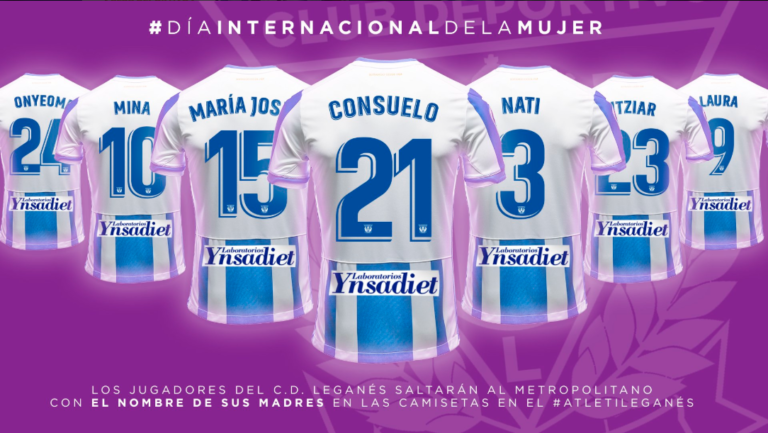 «Los jugadores del C.D. Leganés saltarán el próximo sábado a las 16:15h. al terreno de juego del Atlético de Madrid con el nombre de sus madres en la trasera de la camiseta celebrando el Día Internacional de la Mujer.«, indica el comunicado.