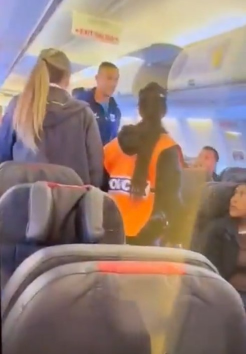 Elementos de seguridad aeroportuaria intervinieron en el lugar y procedieron a retirar al futbolista del avión Foto: Captura de Pantalla Redes Sociales