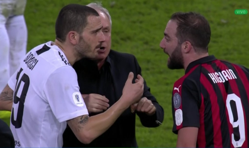 Luego de que el Milán perdiera la Copa del Rey en contra de la Juventus, Gonzalo Higuaín culminó de manera polémica el encuentro. Tras el silbatazo final, los locales celebran su título, mientras el jugador reclamaba.