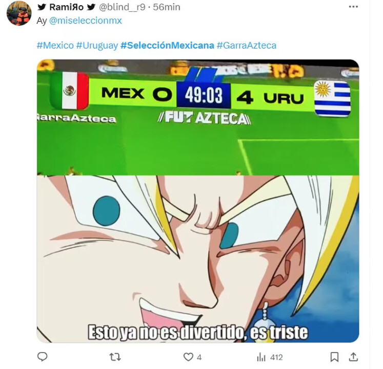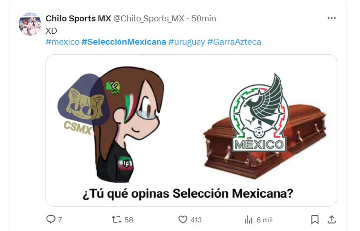 La humillante goleada de 4-0 sufrida por la Selección mexicana de Futbol ante el representativo de Uruguay, desató una oleada de memes. La abrumadora derrota no solo generó la indignación de los mexicanos, sino también numerosas burlas.