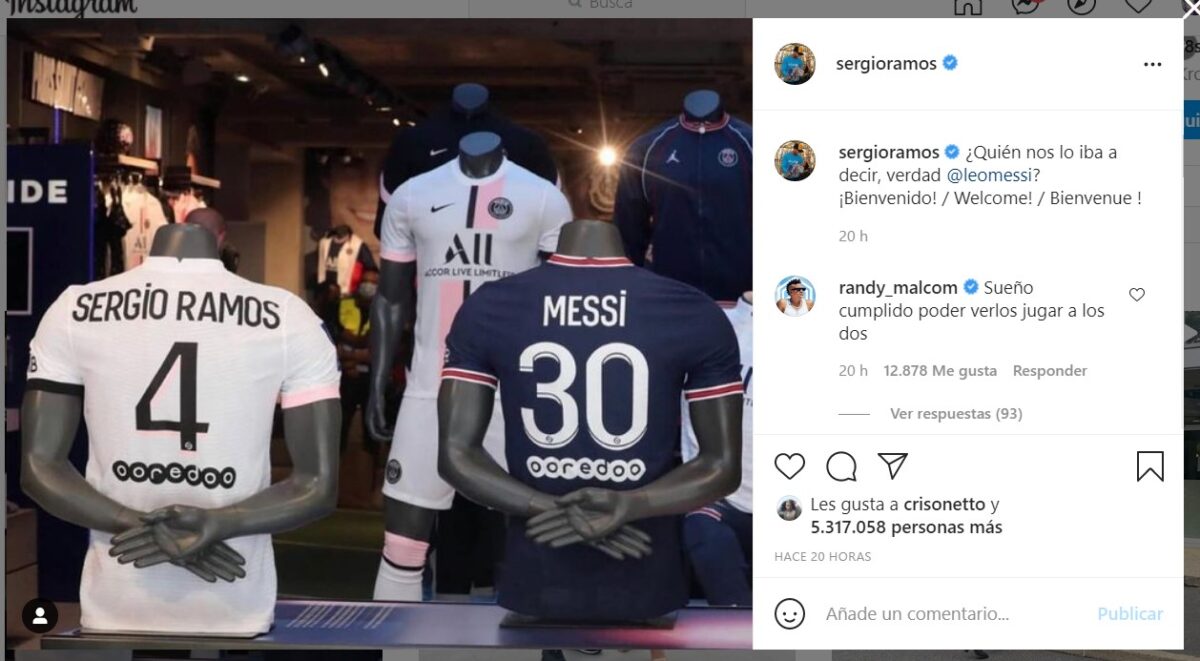 Sergio Ramos, fichado por el París Saint-Germain del Real Madrid, dio la bienvenida con una peculiar foto este miércoles al líder argentino que llegó a la capital francesa, después de años de gran rivalidad con el ex azulgrana.