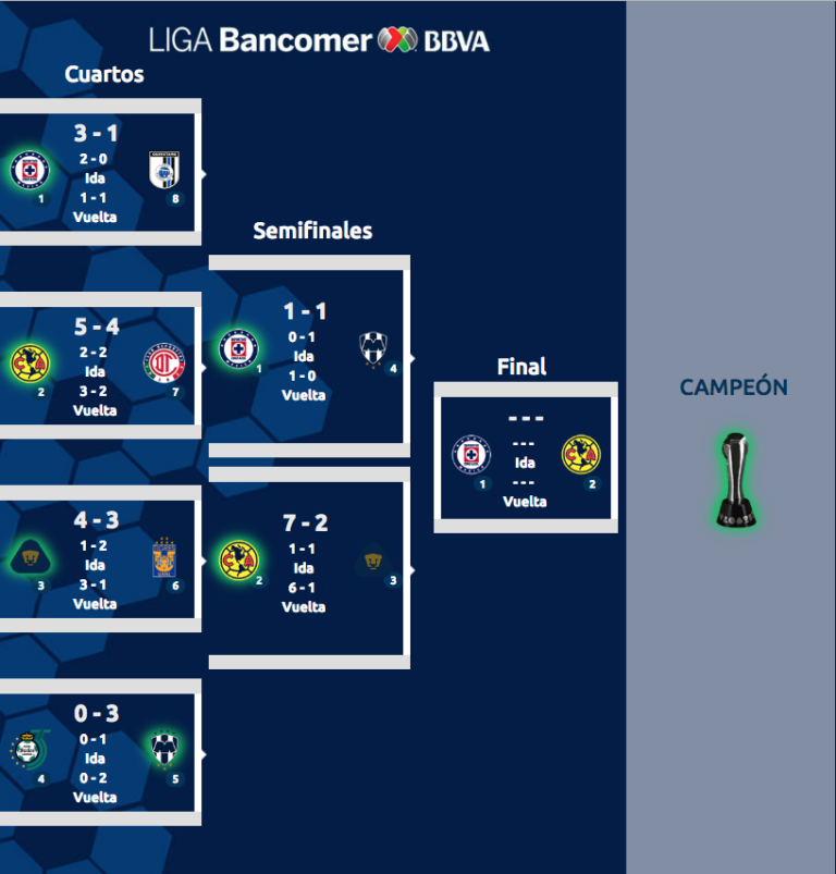 Recordemos que Cruz Azul llegó a la Final, tras derrotar en Cuartos de Final a los Gallos Bancos de Querétaro. En la Ida ganaron 2-0 y en la Vuelta empataron 1-1, el marcador global fue de 3-1.