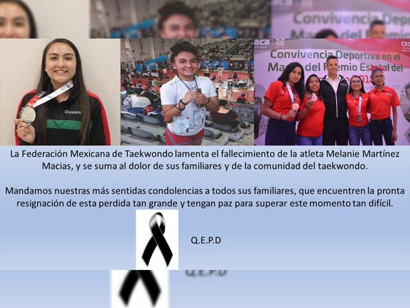 Poco más de 24 horas han pasado, desde que se informó el fallecimiento de Melanie Martínez. La noticia la dio a conocer CECUDE de Oaxaca, lugar donde murió la taekwondoín.