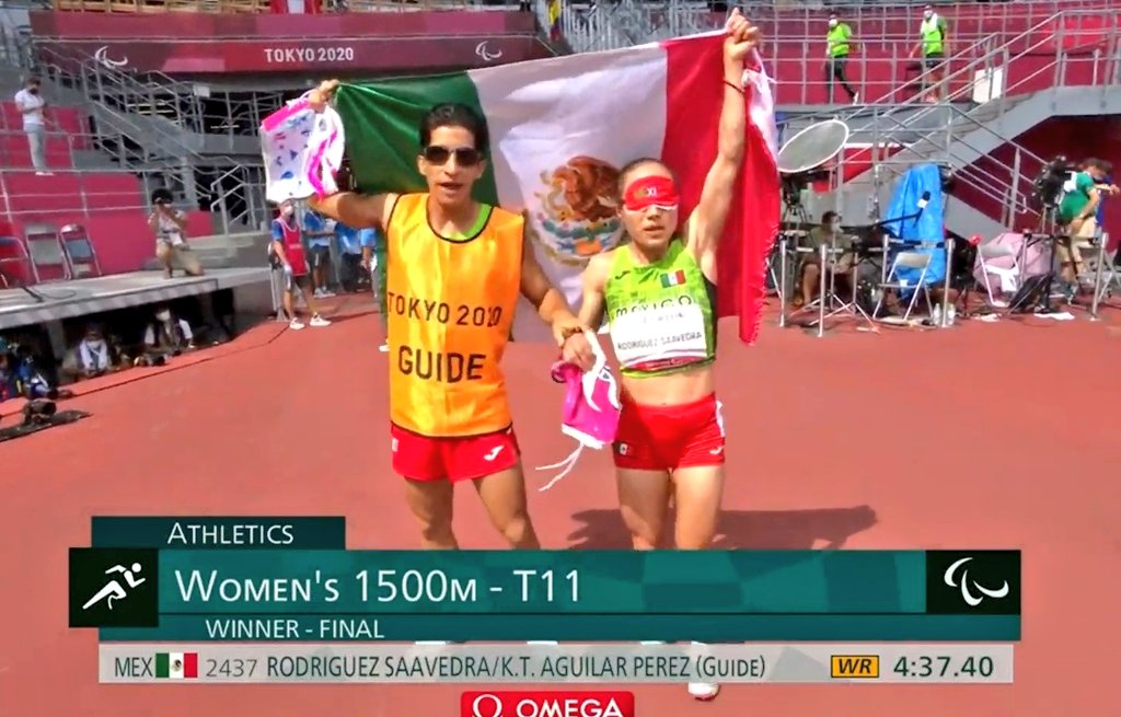 Mónica Rodríguez Saavedra y su guía Kevin Teodoro Aguilar Pérez consiguieron este domingo la presea de oro en representación de México en los Juegos Paralímpicos de Tokio 2020, además impusieron un nuevo récord mundial.