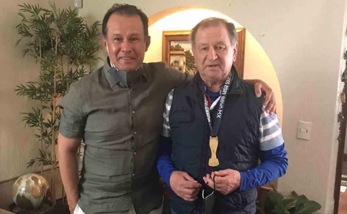 Juan Reynoso, director técnico del actual campeón del futbol mexicano le entregó la medalla de campeón del torneoGuard1anes 2021 a Enrique Meza, quien lo trajo al futbol mexicano y le dio su primera oportunidad como auxiliar.