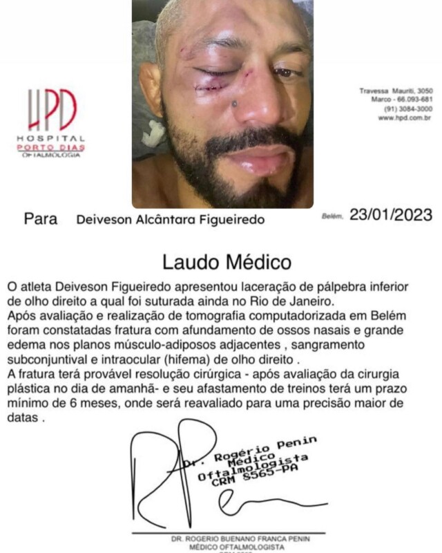 Después de ser sometido a diversos exámenes médicos para conocer con certeza el tamaño del zurdazo que le propinó el tijuanense, Figueiredo acabó con algunos huesos nasales sumergidos, lo que seguramente lo llevará a pasar por el quirófano y a parar al menos por seis meses.