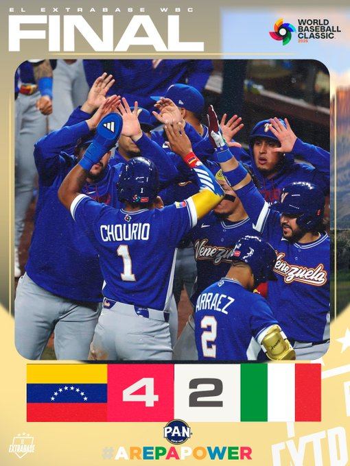 Luego, como marcan los cánones beisbolisticos, la séptima entrada fue la fatídica para Italia ya que con un «comeback» épico Andrés Giménez, Jackson Chourio y Ronald Acuña Jr. anotaron para darle la vuelta a la tortilla logrando un marcador definitivo de 4-2.