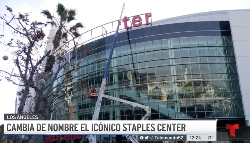 La icónica arena Staples Center de los Angeles, casa de los Lakers de Los Angeles, de Los Clippers, y sede de innumerables eventos deportivos, cambiará de nombre, este lunes comenzaron ya a quitar el enorme cartel del nombre con que se ha conocido por 20 años.