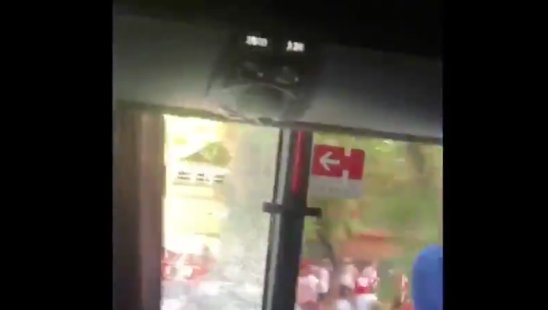 Se filtró un video donde los jugadores del Boca Juniors se encuentra a bordo del autobús y es agredido por los hinchas del River Plate. El video es tomado desde adentro del transporte.