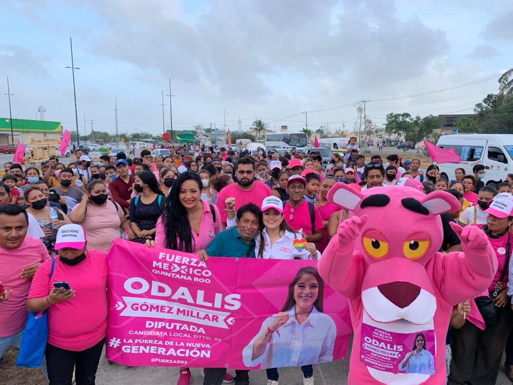 El grito de «Se ve, se siente, Odalis con la gente» y «Odalis, Odalis, Odalis», retumbaron por las calles aledañas a la avenida Lak’in.