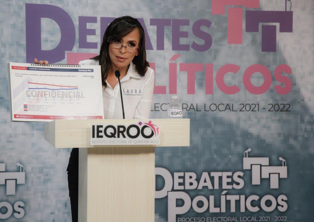 Al presentar un proyecto político sólido y con propuestas reales para mejorar en serio la vida de los quintanarroenses, Laura Fernández Piña, candidata a gobernadora de la coalición “Va por Quintana Roo”, ganó el debate político que organizó el Instituto Electoral de Quintana Roo (IEQROO), en el que pidió salir a votar el 5 de junio para acabar con la violencia y la inseguridad.