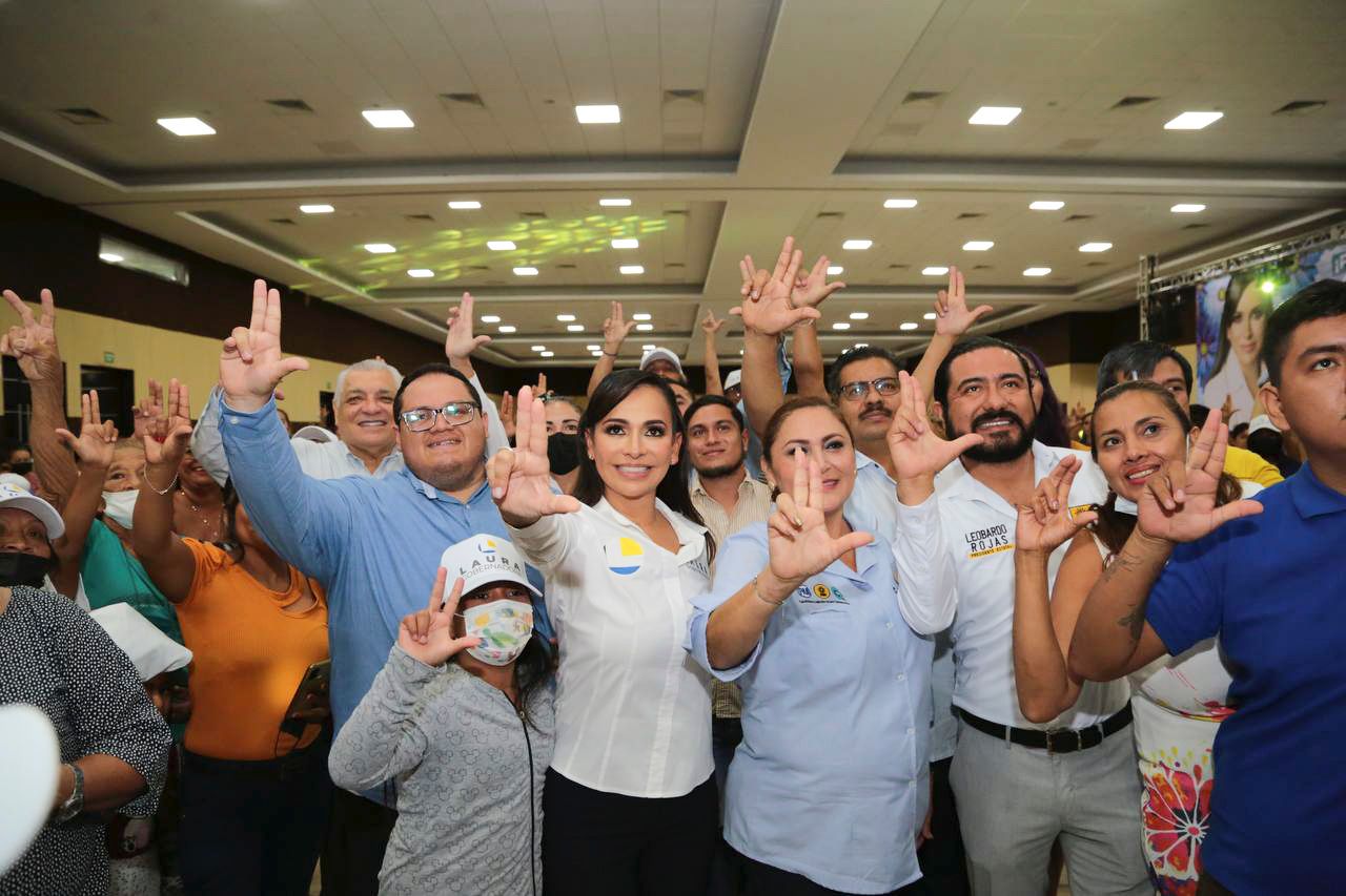 Durante el evento, Laura Fernández estuvo acompañada por los dirigentes estatales del PAN y el PRD, Faustino Uicab y Leobardo Rojas, respectivamente, además de los candidatos a diputados Fausto Canto y Candy Raygoza, que junto al líder cañero Evaristo Gómez, respaldan el proyecto de «Va por Quintana Roo».