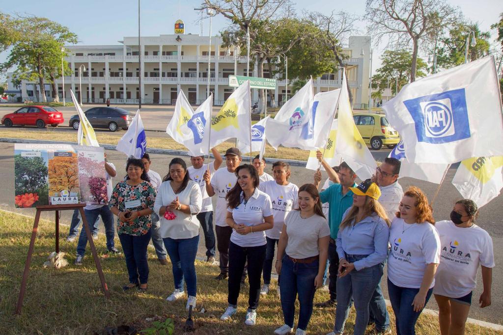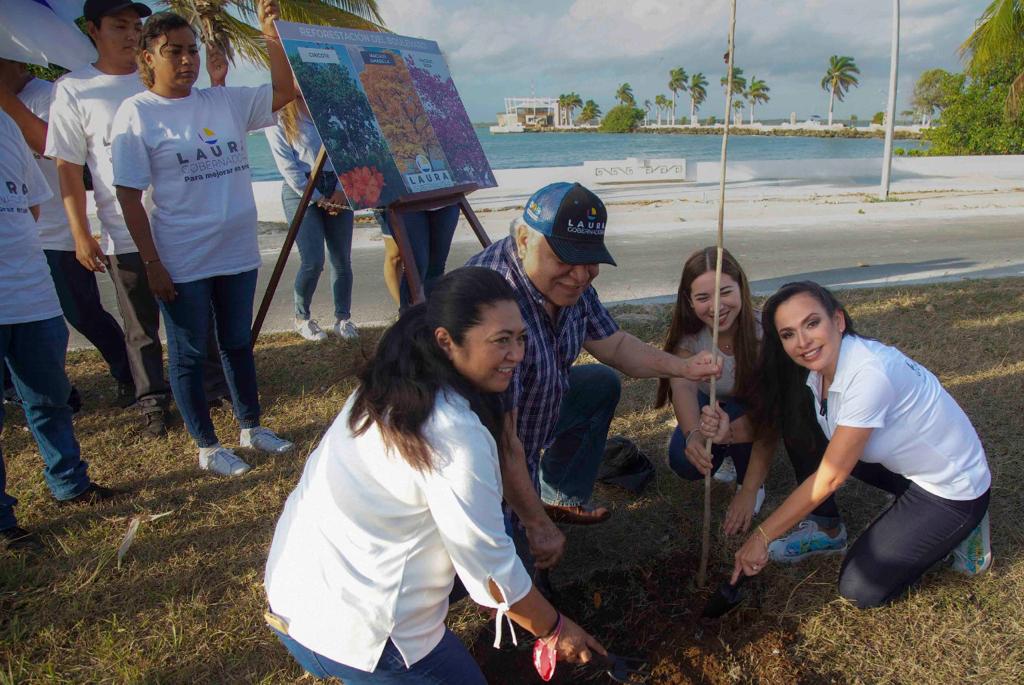 Esta mañana Laura Fernández encabezó acciones de reforestación en el Bulevar Bahía, donde acompañada de simpatizantes se dio a la tarea de plantar árboles de especies endémicas como Maculix y Ciricote, donde hizo un llamado a la población a cuidar el medio ambiente y proteger las áreas verdes.