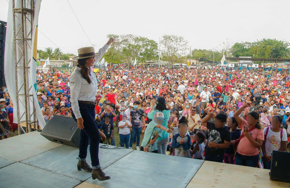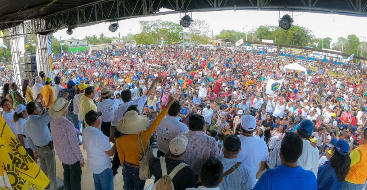 Desde distintas comunidades de la Ribera del Río Hondo, La Unión hasta Ucum, más de 6 mil personas llegaron a la comunidad de Carlos A. Madrazo para darle su apoyo a Laura Fernández por ser la candidata con las mejores propuestas.