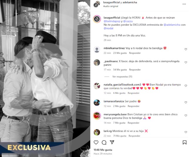 “¡Llegó la HORA! Antes de que se reúnan @belindapop y @cazzu. No te puedes perder la EXCLUSIVA entrevista de @adelamicha con @nodal“, escribió la periodista en su post.