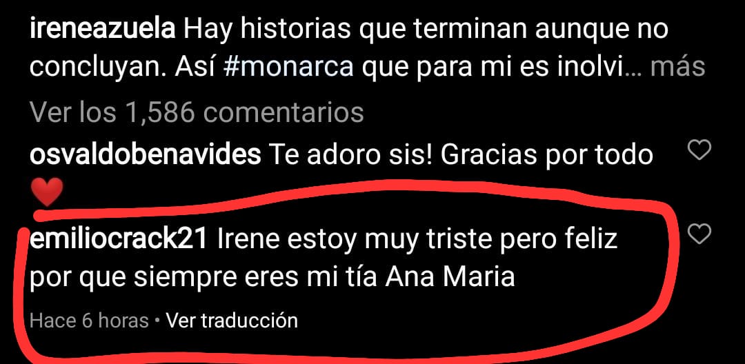 En dicha publicación el niño Emilio Delgado, quien es el hijo de Fernanda Castillo en la serie, se despidió de una manera muy tierna de la Irene Azuela: